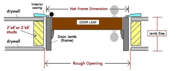 Rough Opening (RO): Measure the stud-to-stud opening in the wall, which should be about 2” wider and 2”higher than the door itself to allow for the frame.